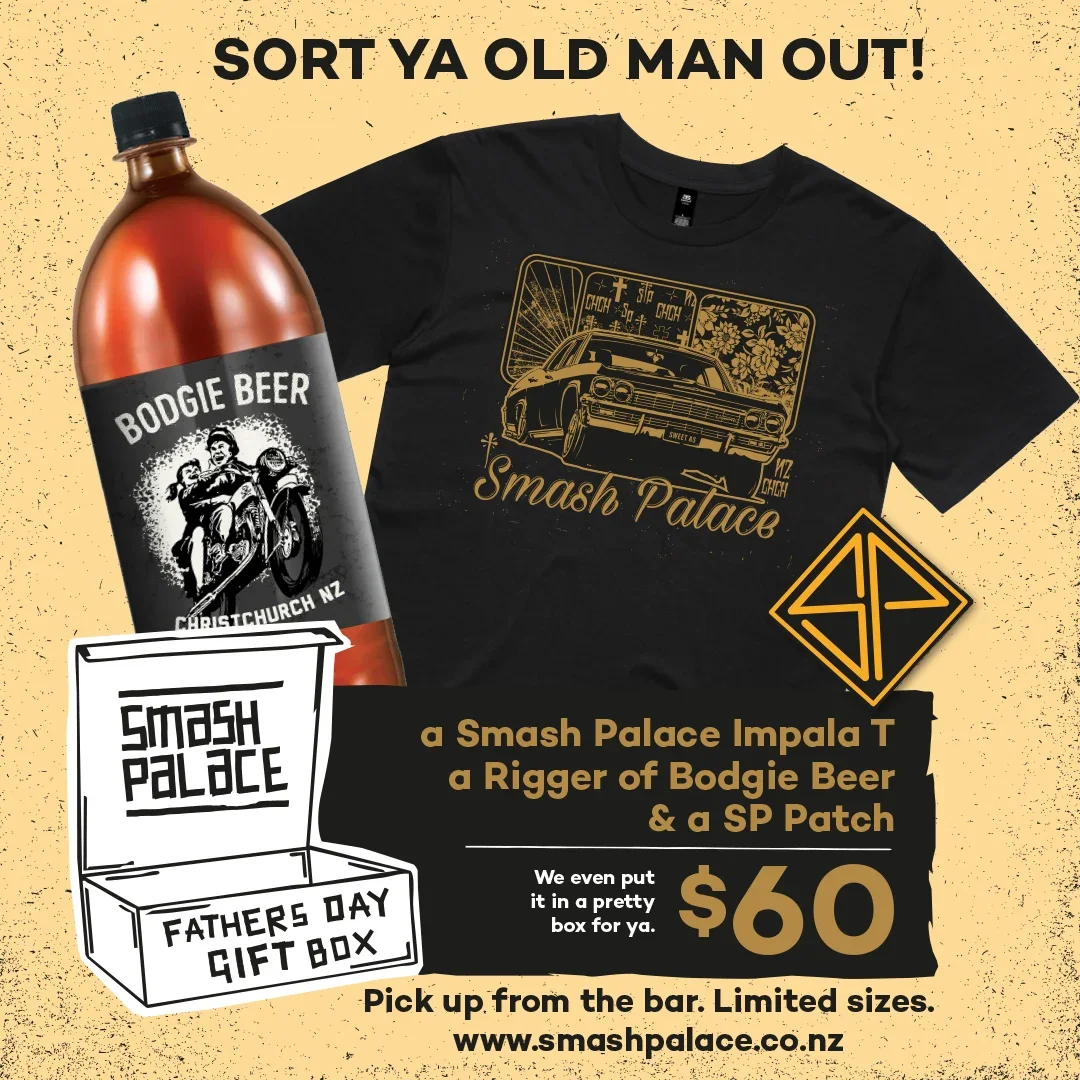 a 1.25L rigger of Bodgie Pale Ale, the Smash Pale Impala Tee, and a SP patch—all packaged in a pretty gift box, ready to put a smile on your dear Dad’s dial.